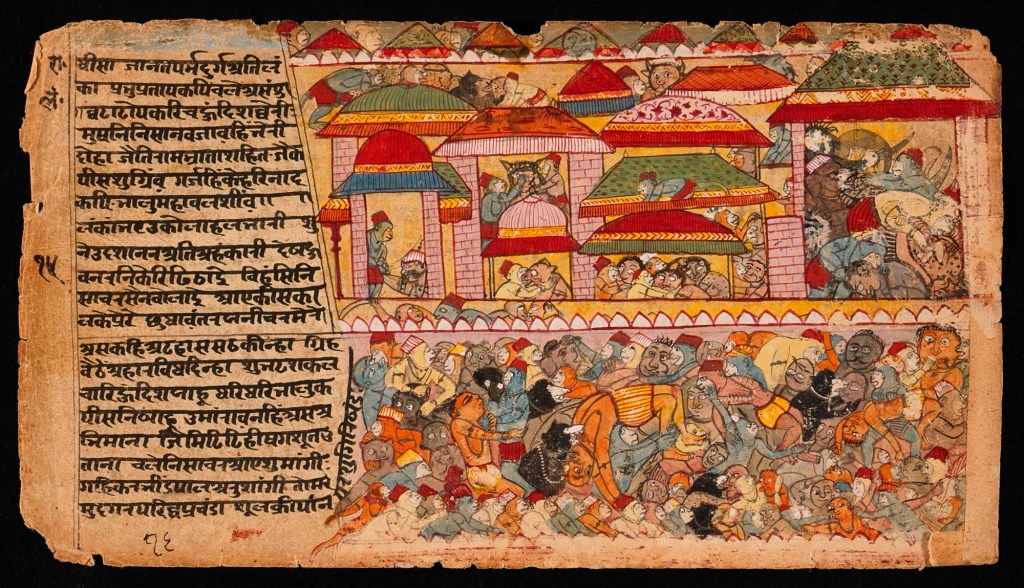 The above is Kumbharkana, a mighty and formidable giant, the second son of Rishi Vishrava and Goddess Sukeshi. When Rama’s army of apes from Kishkhinda invaded Lanka, Kumbharkana fought valiantly until death.