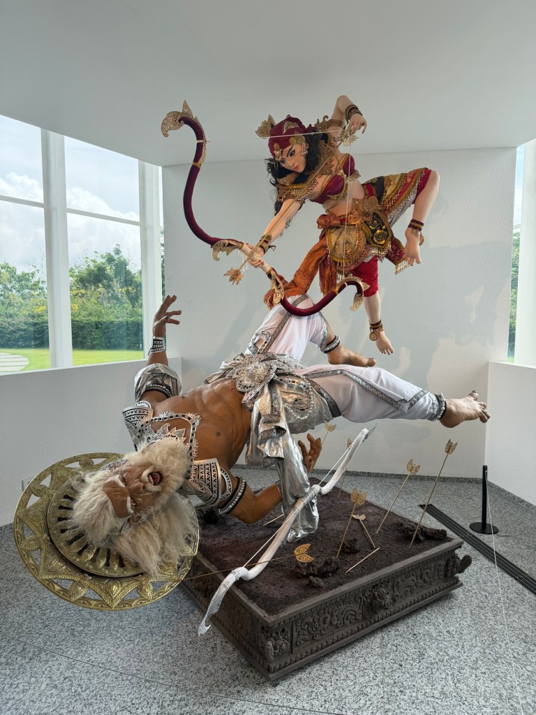 This was by far the largest of the museum’s installations. Ravana, the formidable giant king of Lanka, gained his immense power through years of meditation and devotion to Lord Shiva. Blessed with divine strength, his boundless ambitions led him to disregard norms and morality in pursuit of his desires. His obsession with Sita, the princess of Mithila and wife of Prince Rama of Ayodhya, consumed him, driving him to act dishonourably as a king.